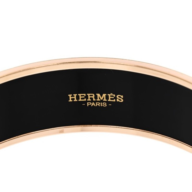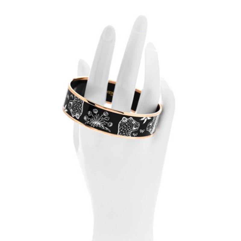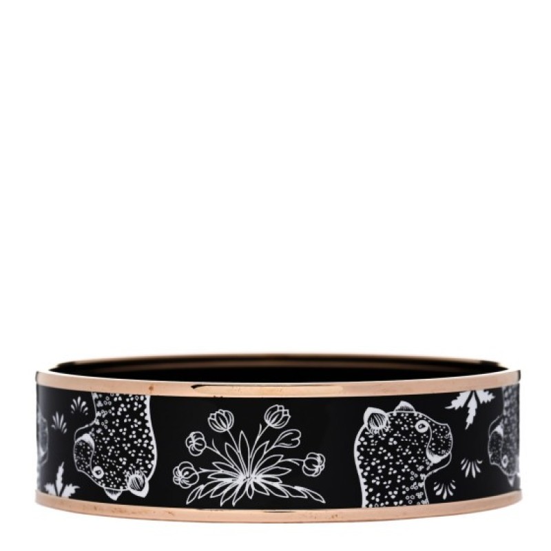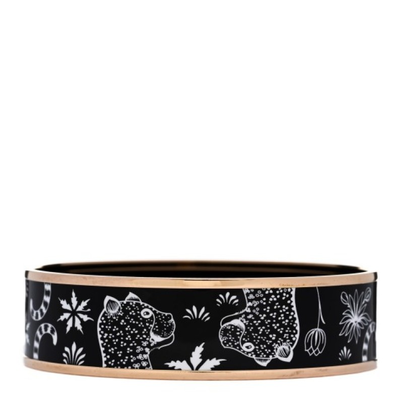 Hermes Enamel Printed Wide Les Leopards Bracelet 70 Black