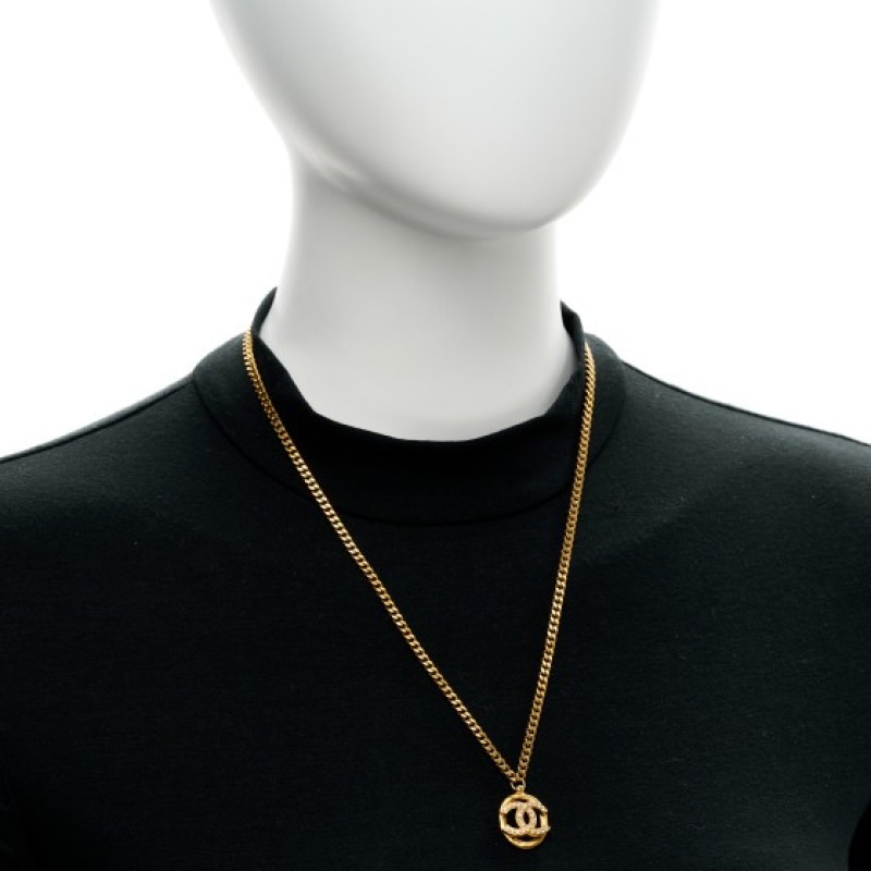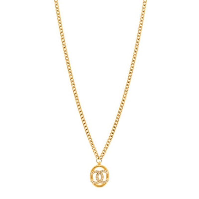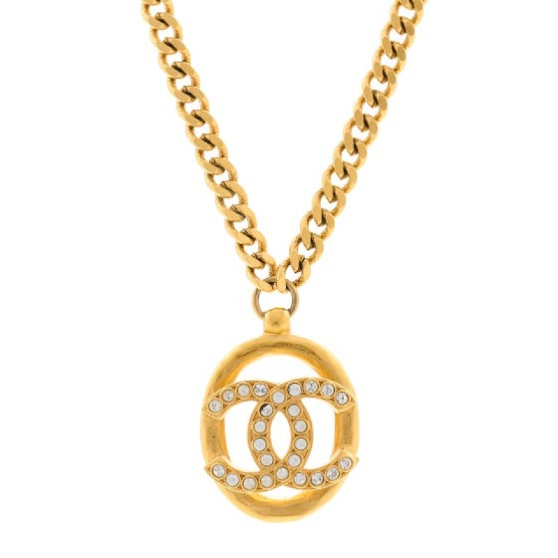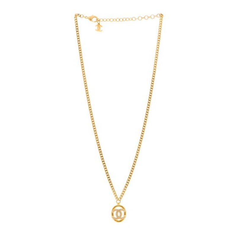 Chanel Crystal CC Chain Pendant Necklace Gold