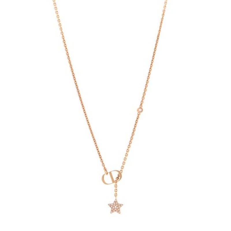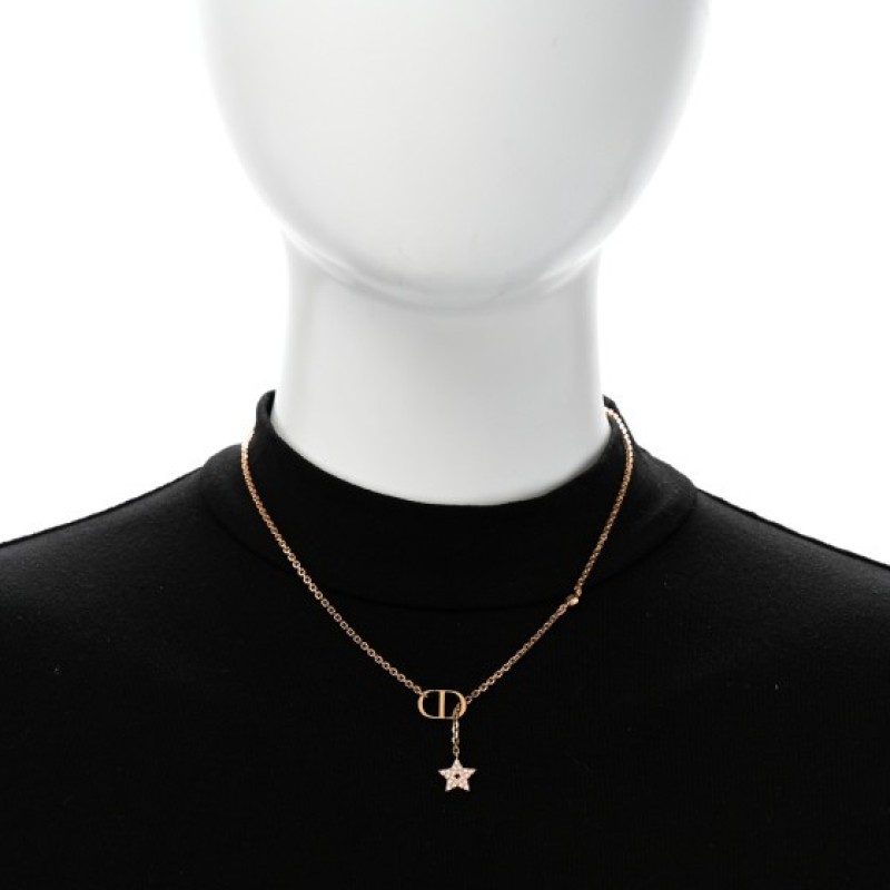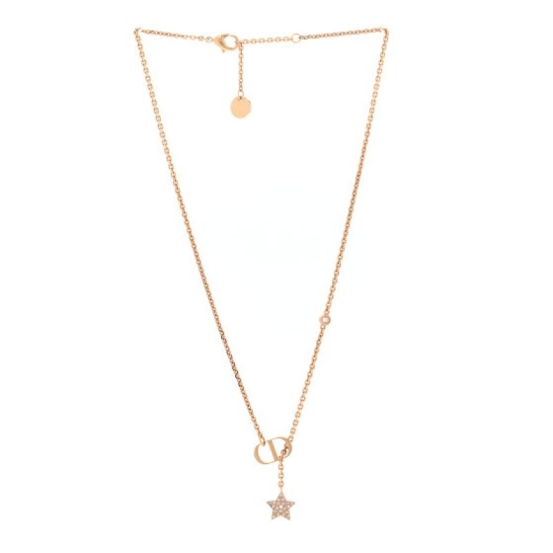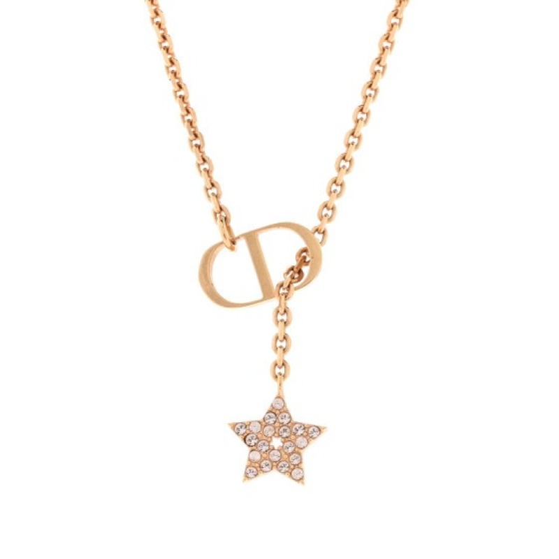Christian Dior Metal Crystal Petit CD Necklace Rose Gold