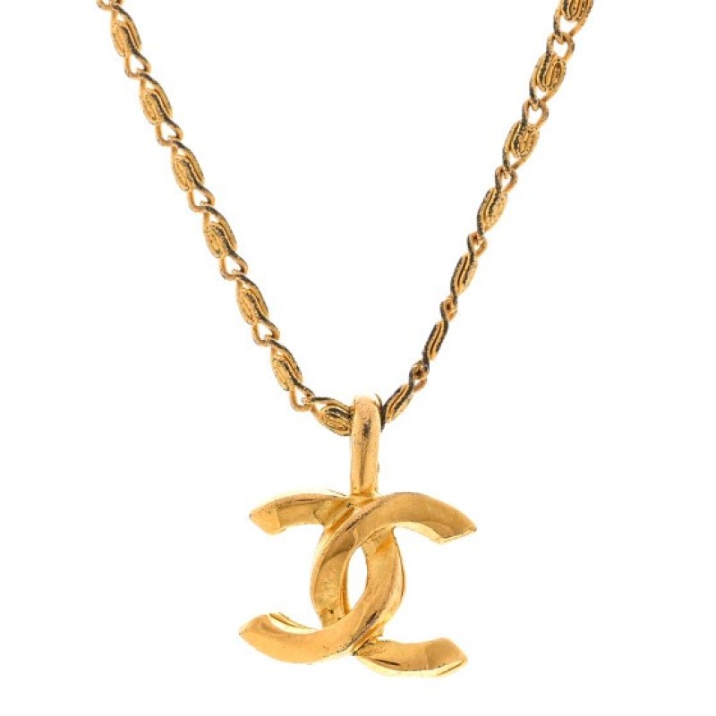 This is an authentic CHANEL Metal CC Chain Pendant Necklace in Gold. This chic chain necklace style necklace in polished gold. The necklace features multi-linked chains with a textured CC logo.