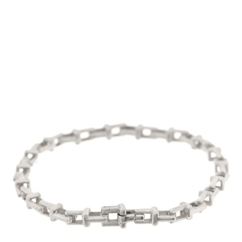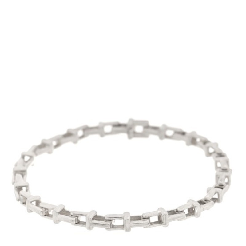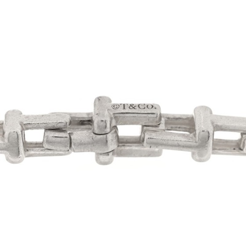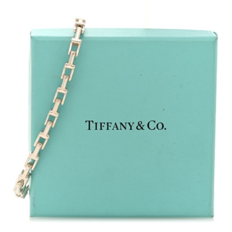 This is an authentic TIFFANY Sterling Silver T Link Chain Bracelet. The bracelet is crafted of sterling silver and features "T" motif links with a high polish finish.