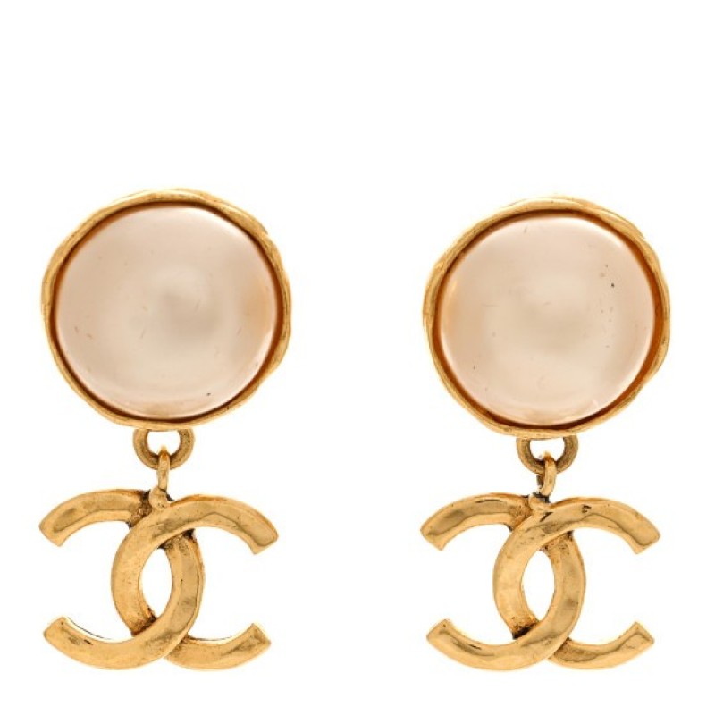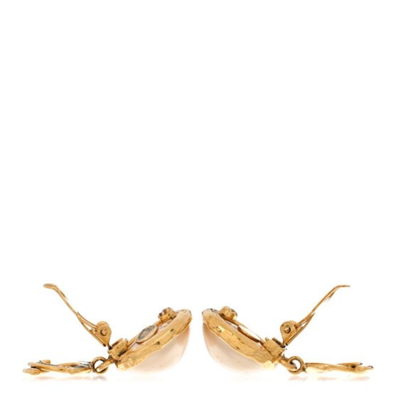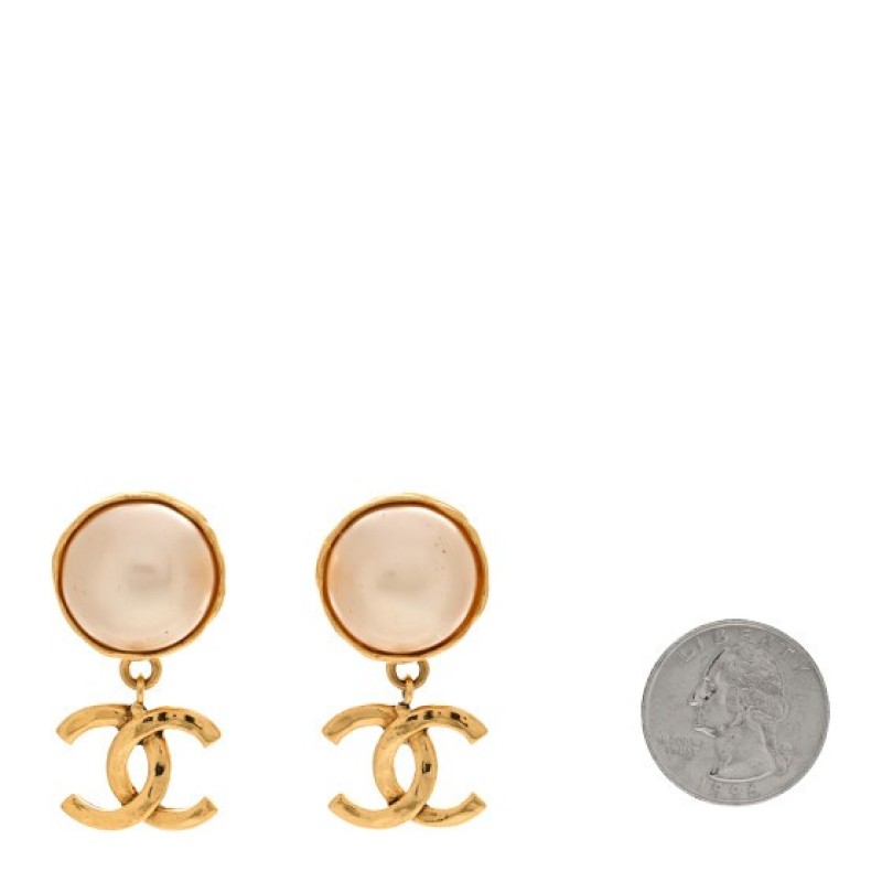 Chanel Pearl CC Dangle Clip On Earrings Gold