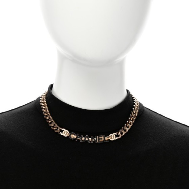 This is an authentic CHANEL Metal Enamel Chain CC Choker in Gold and White. This choker necklace features a gold chain with white enamel Chanel CC logos.
