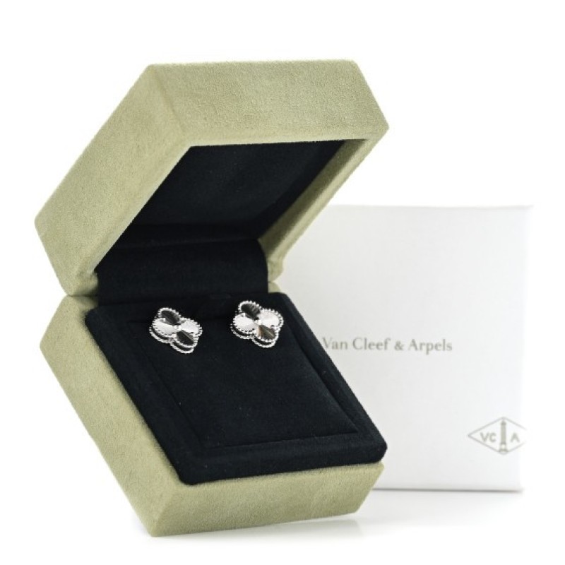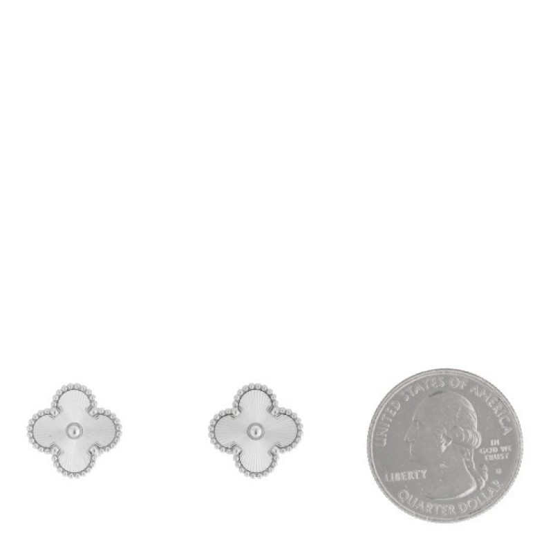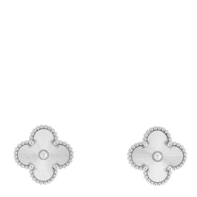 Van Cleef & Arpels 18K White Gold Guilloche Vintage Alhambra Earrings