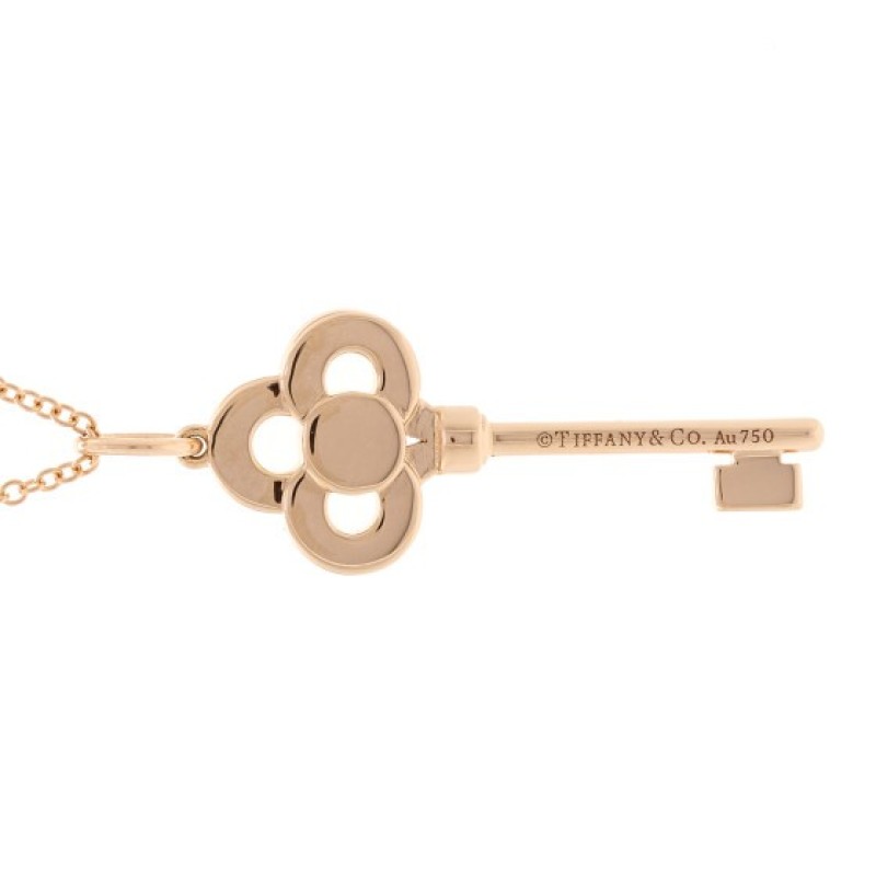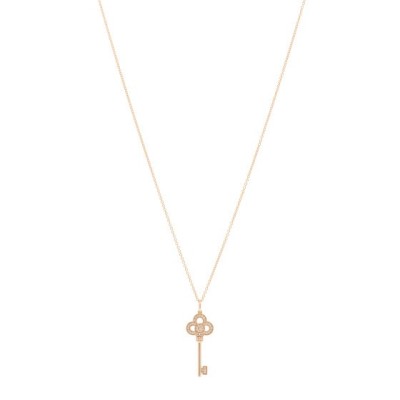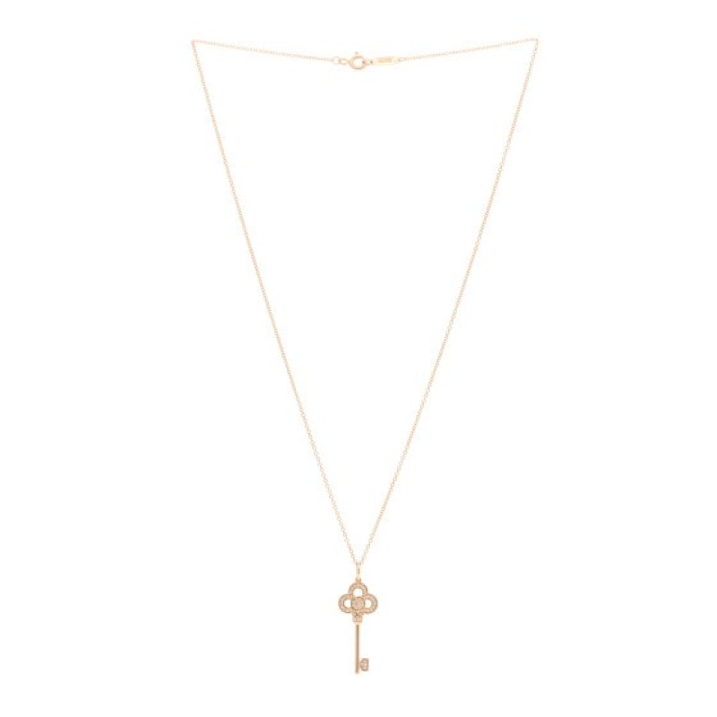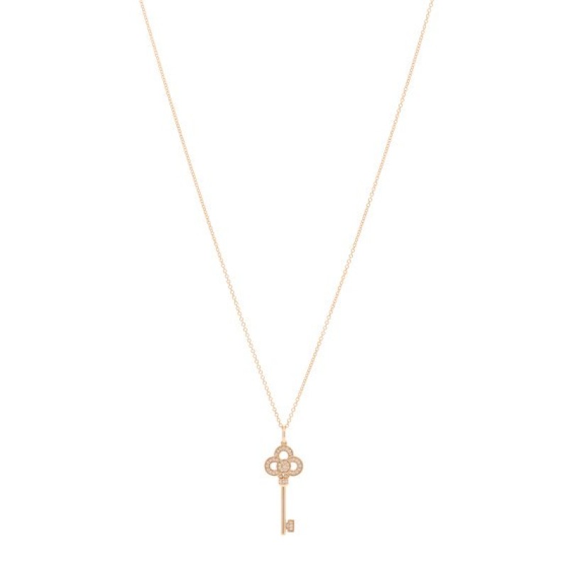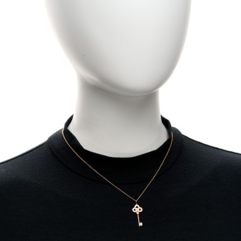 Tiffany 18K Rose Gold Diamond Mini Crown Key Pendant Necklace