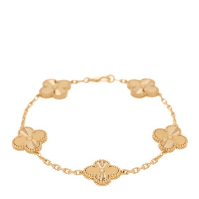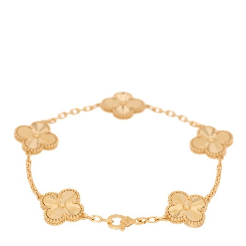 Van Cleef & Arpels 18K Yellow Gold 5 Motifs Guilloche Vintage Alhambra Bracelet $7,975 |