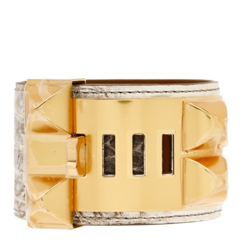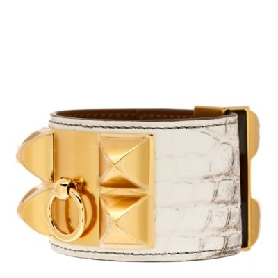 Hermes Matte Niloticus Crocodile Himalaya Collier De Chien CDC Bracelet T1 Blanc $2,750 |
