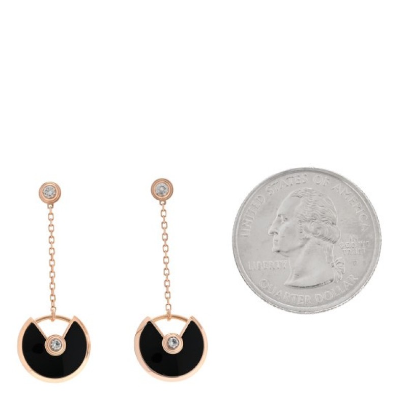 Cartier 18K Pink Gold Diamond Black Onyx Amulette de Cartier Drop Earrings