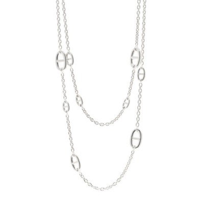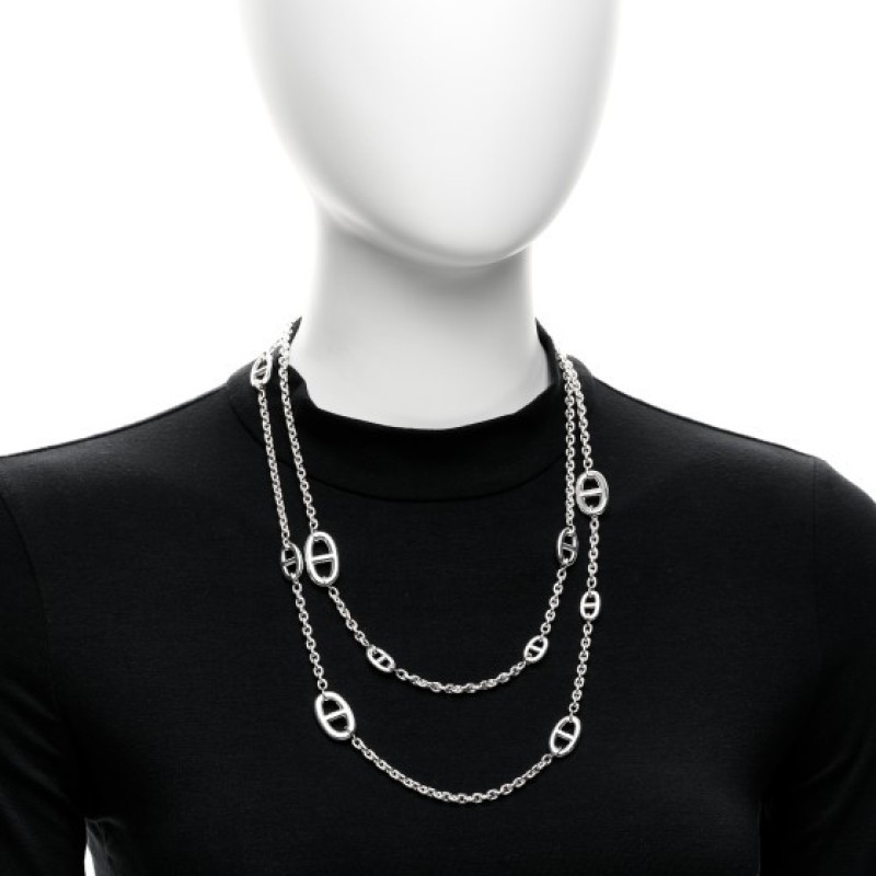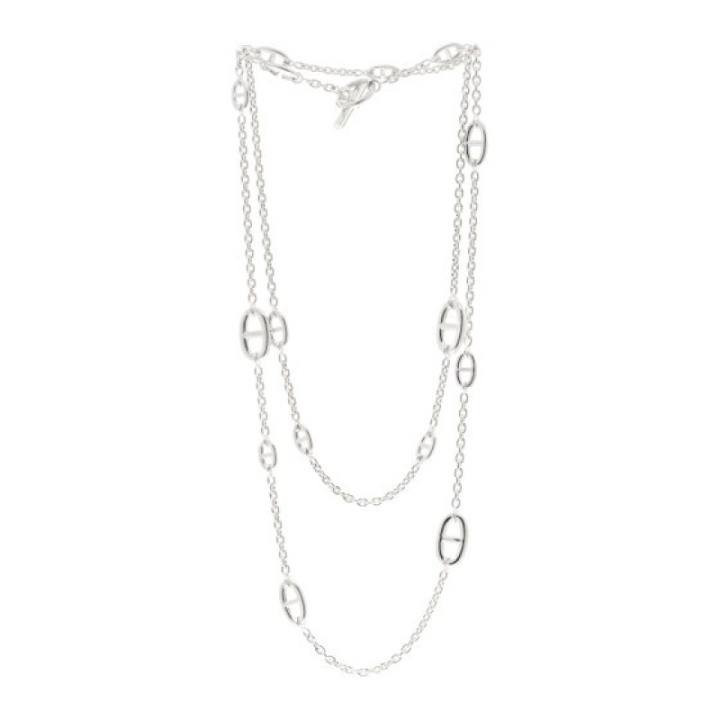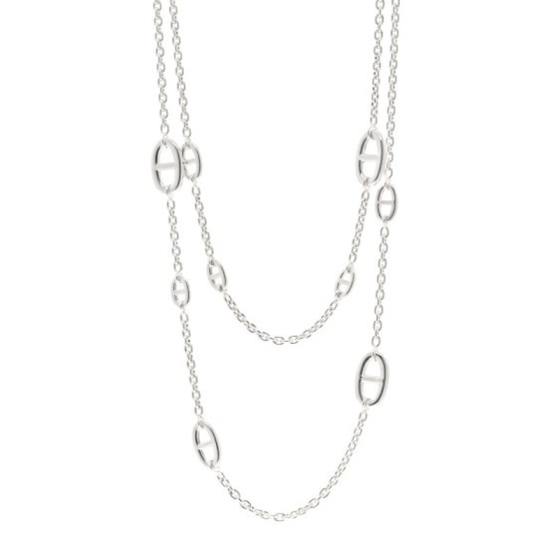 This is an authentic HERMES Sterling Silver Farandole Necklace 120. The necklace is crafted of sterling silver and features Chaine d' Ancre links in various sizes throughout the chain.