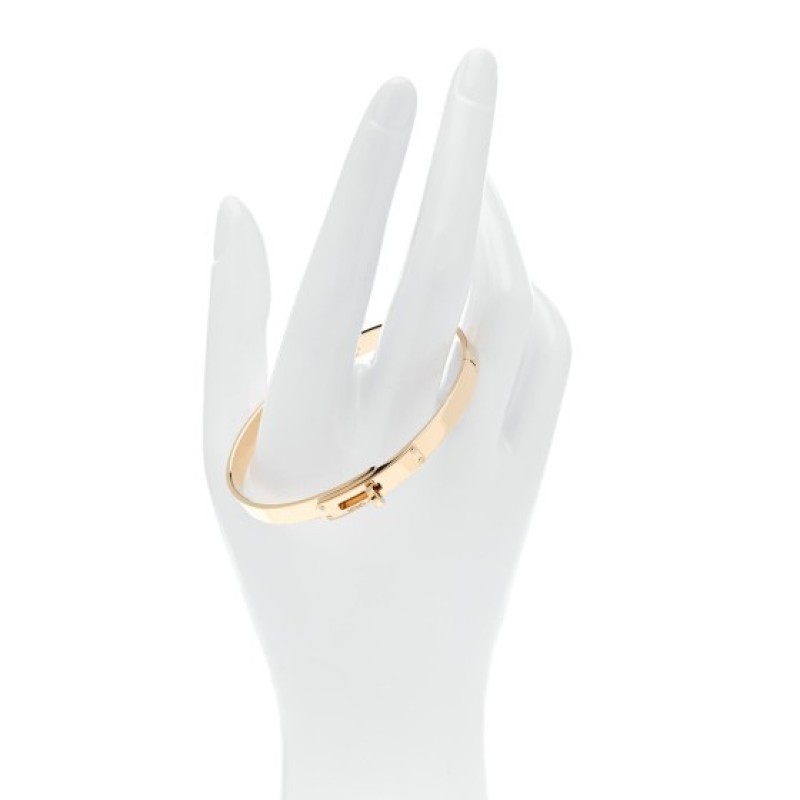This is an authentic HERMES 18K Yellow Gold Diamond PM Kelly Bracelet LG. The bracelet is crafted of 18 karat yellow gold and features the signature Kelly motif turn lock with four bezel set diamonds, approximately .02 total carat weight.
