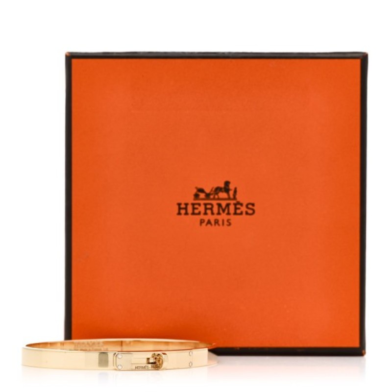 Hermes 18K Yellow Gold Diamond PM Kelly Bracelet LG