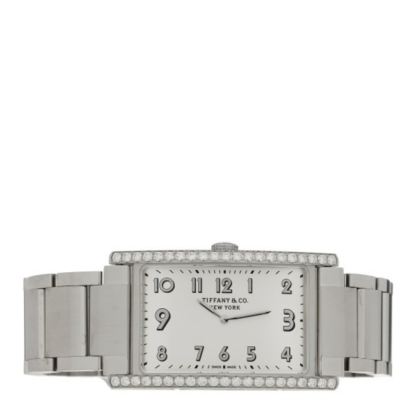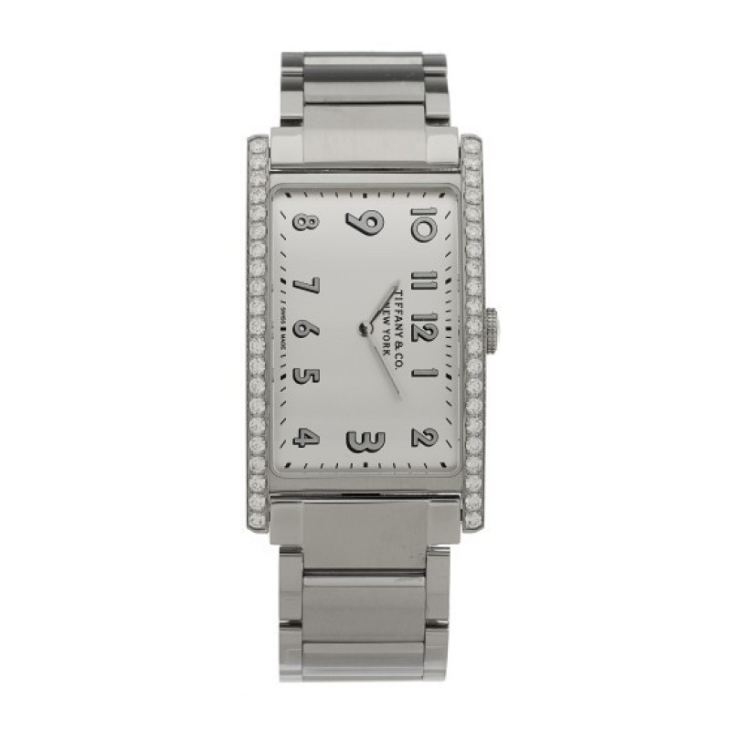 Tiffany Stainless Steel Diamond Bezel 25mm East West Quartz Watch White