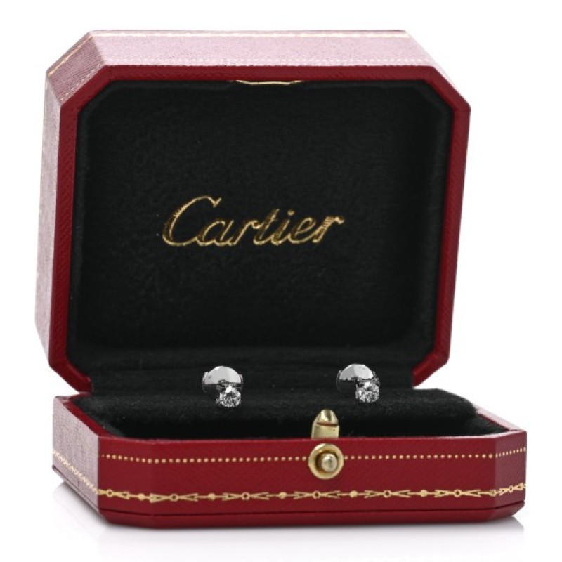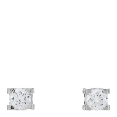 This is an authentic CARTIER 18K White Gold Diamond .46ctw C De Cartier Earrings. The earrings are crafted of 18 karat white gold and feature solitaire round brilliant cut diamonds, approximately .46 total carat weight, with E color and VS1 clarity.