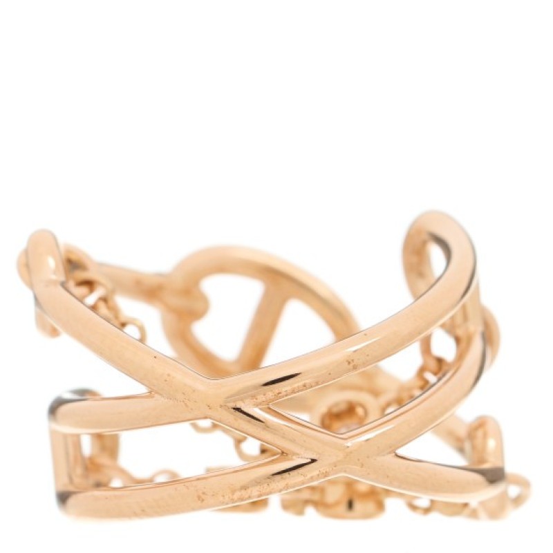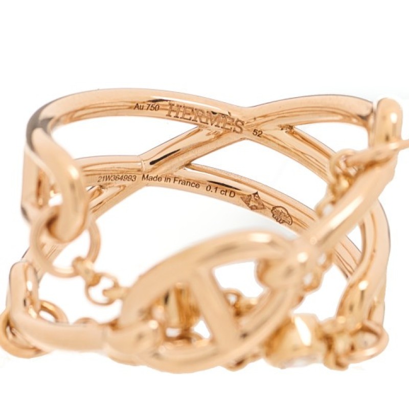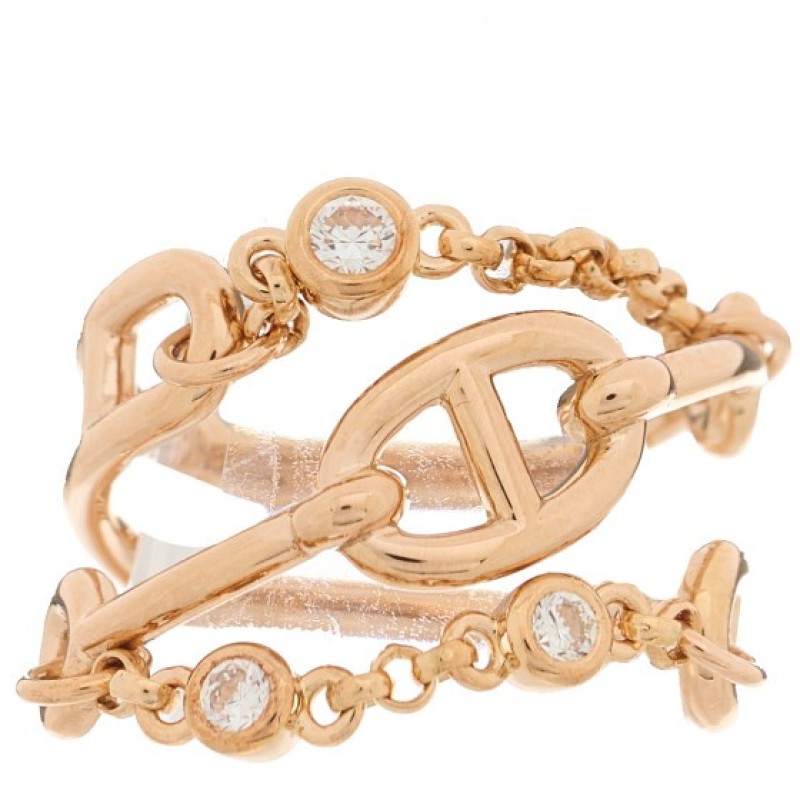 Hermes 18K Rose Gold Diamond MM Chaine d'Ancre Chaos Ring 52 6