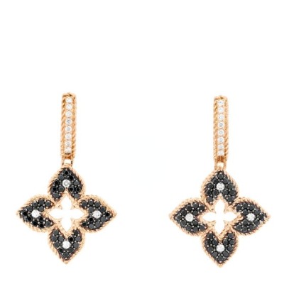 Roberto Coin 18K Rose Gold Black Diamond Petite Venetian Princess Flower Hoop Earrings $4,550 |