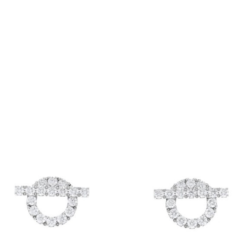 This is an authentic pair of HERMES 18K White Gold Diamond Finesse Earrings. The earrings are crafted of 18 karat white gold and feature a bar and ring motif set with round brilliant cut diamonds, approximately .92 total carat weight.