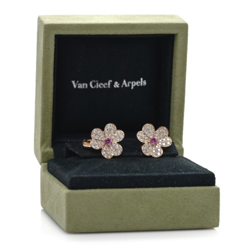 Van Cleef & Arpels 18K Rose Gold Diamond Pink Sapphire Small Frivole Earrings $16,555 |
