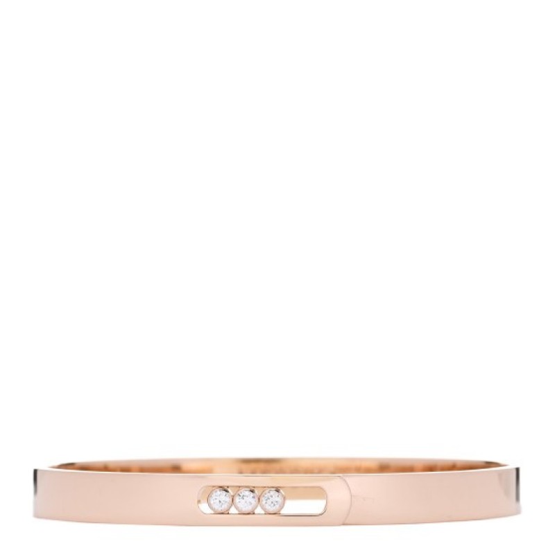 This is an authentic MESSIKA 18K Rose Gold Diamond Move Noa Bangle Bracelet size M. The bracelet is crafted of 18 karat rose gold and features an open station with three bezel-set moving diamonds, approximately .15 total carat weight.