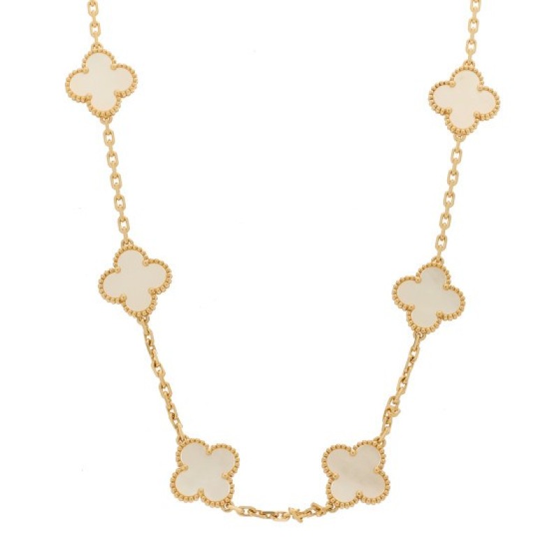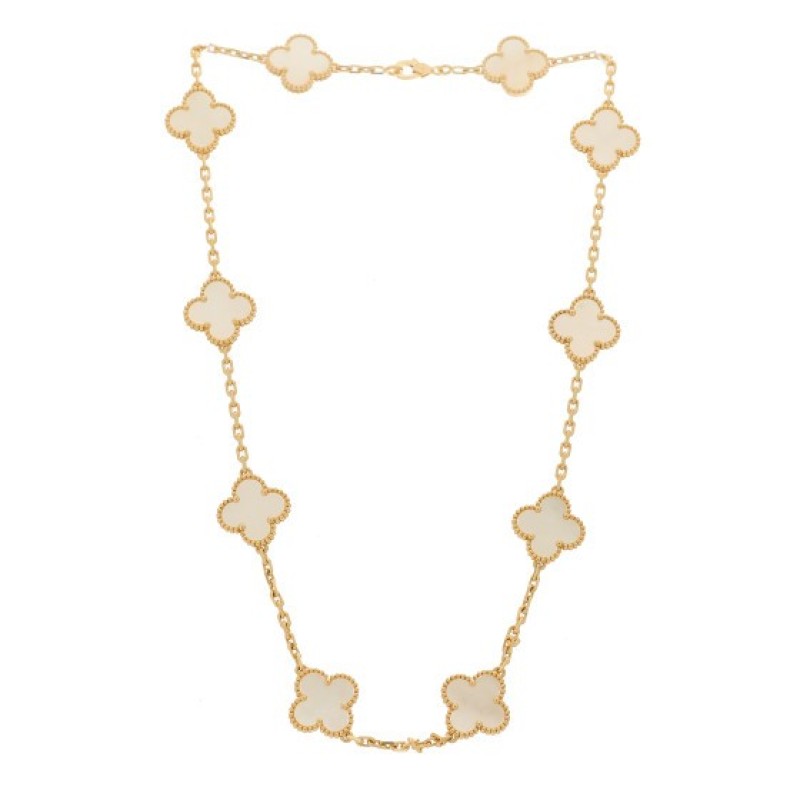 Van Cleef & Arpels 18K Yellow Gold Mother of Pearl 10 Motifs Vintage Alhambra Necklace $9,725 |