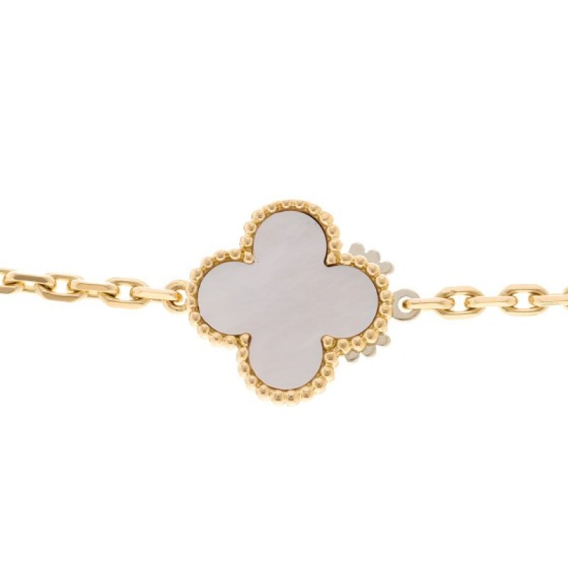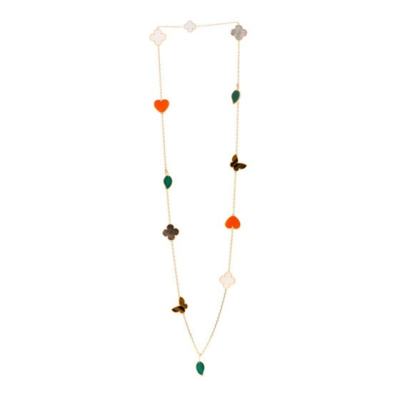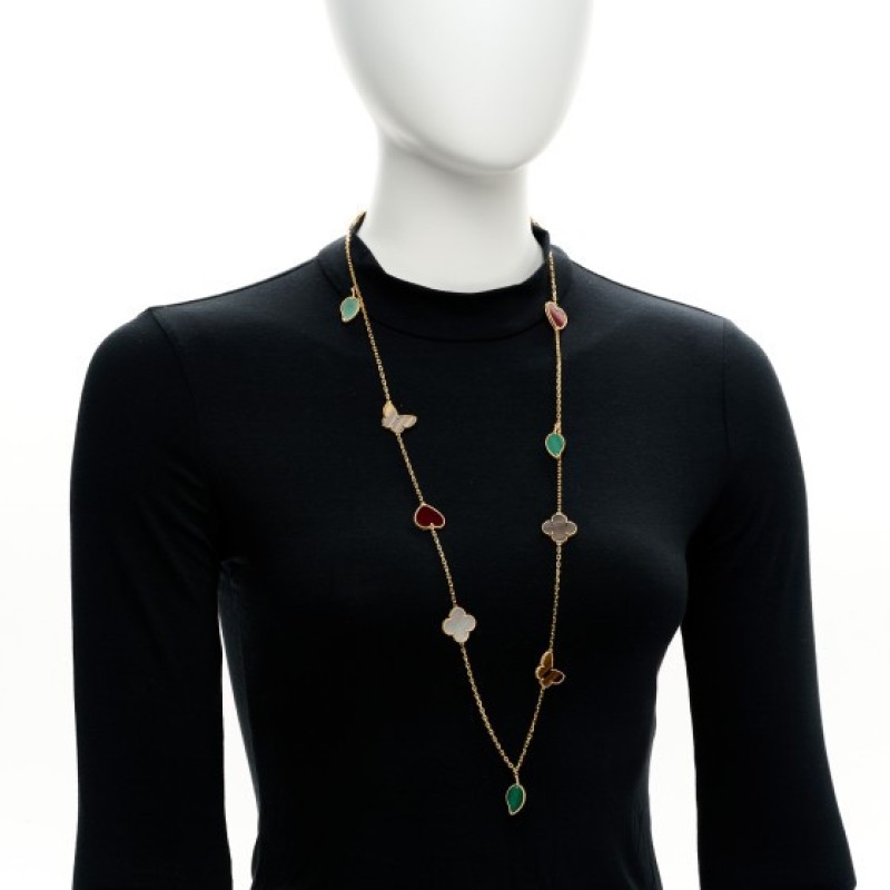 Van Cleef & Arpels 18K Yellow Gold Mother of Pearl Malachite Carnelian Tiger Eye 12 Motif Lucky Alhambra Necklace $17,590 |