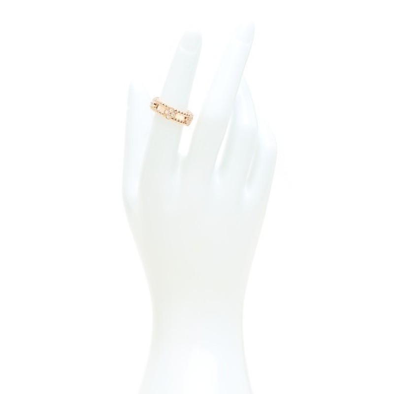 Van Cleef & Arpels 18K Rose Gold Diamond Sweet Perlee Clovers Ring 51 5.75