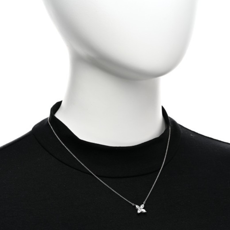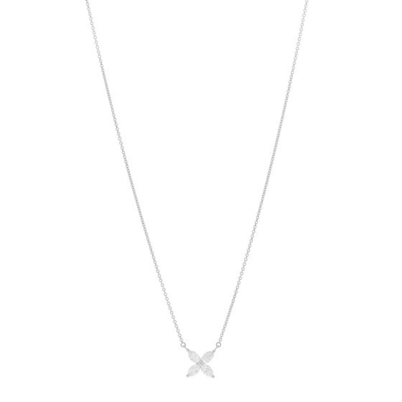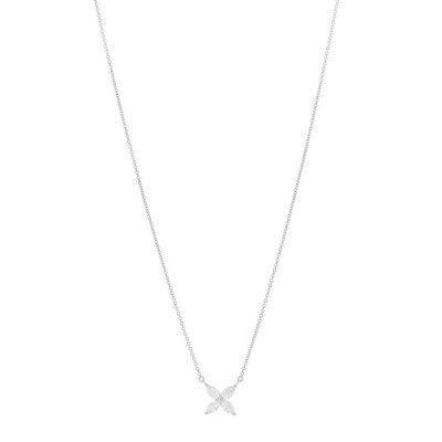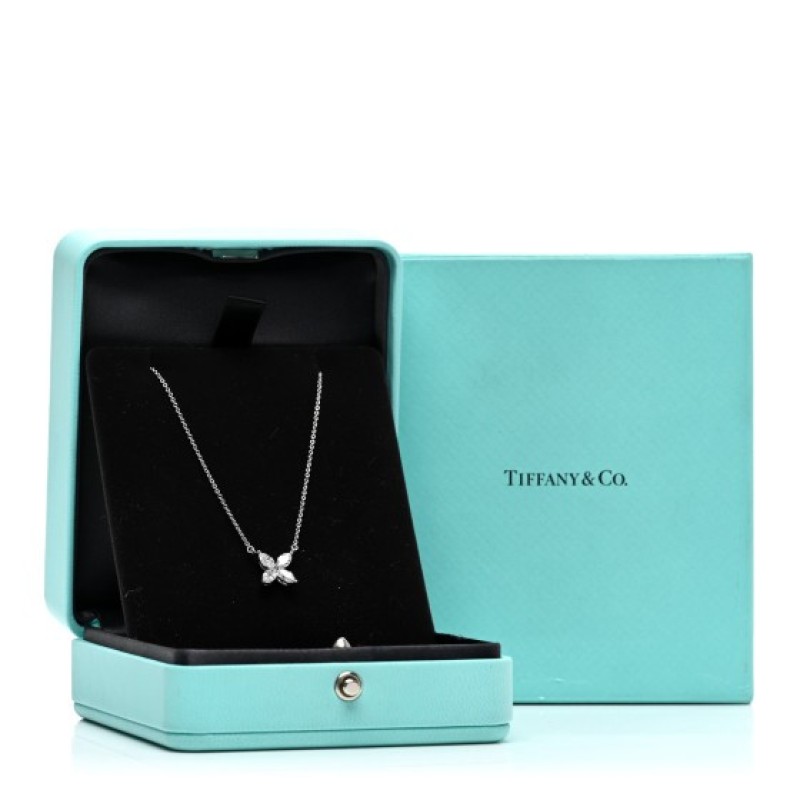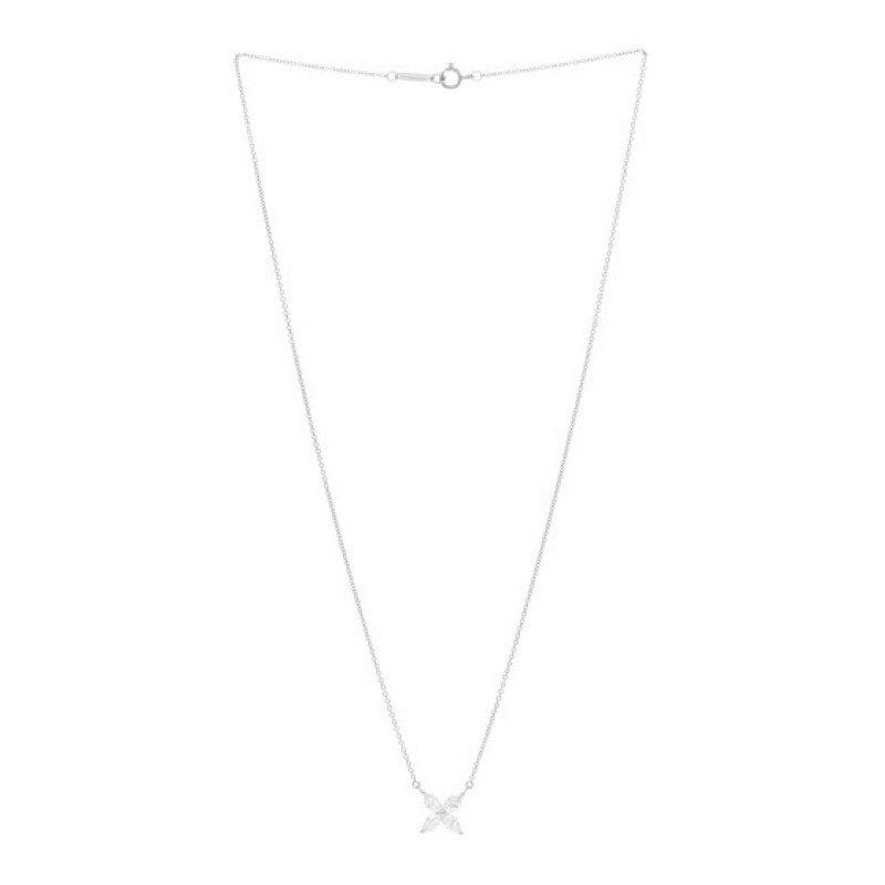 This is an authentic TIFFANY Platinum Diamond Large Victoria Necklace. The necklace is crafted of platinum and features four marquise cut diamonds weighing approximately .81 total carat weight.