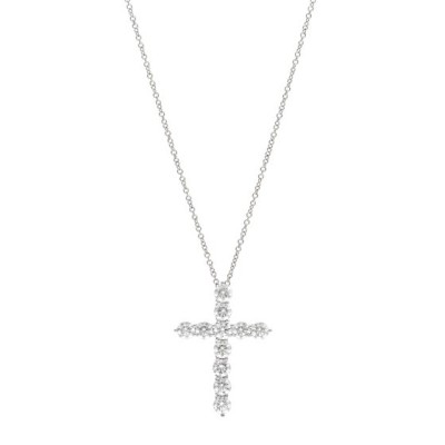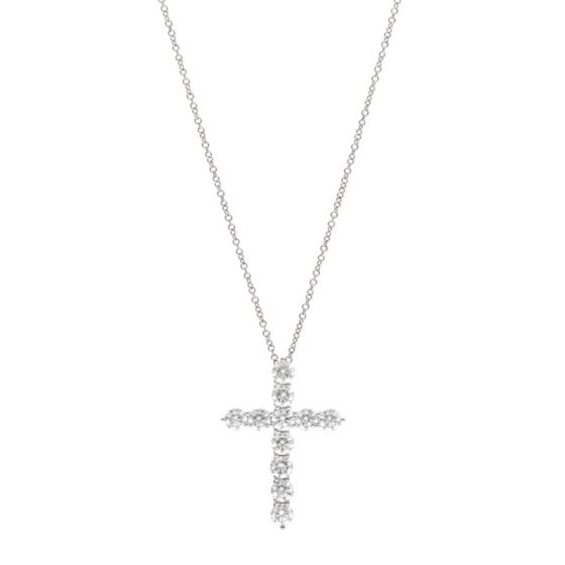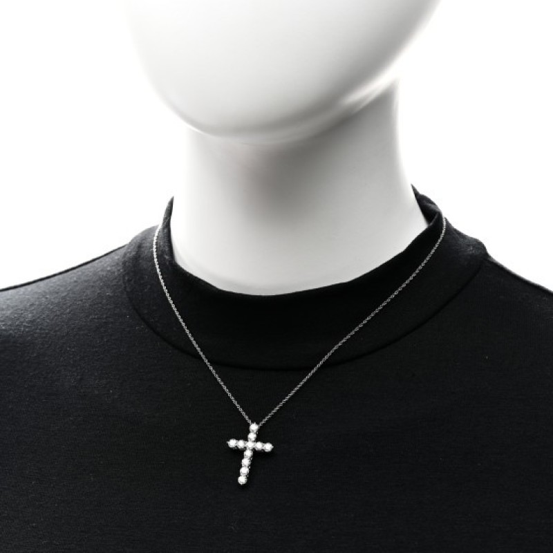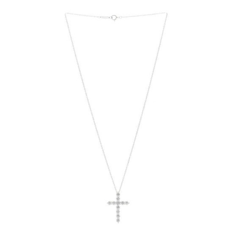 Tiffany Platinum Diamond Large Cross Pendant Necklace