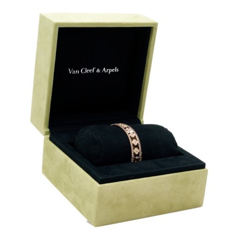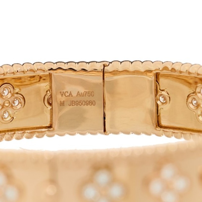 Van Cleef & Arpels 18K Rose Gold Diamond Perlee Clovers Bangle Bracelet M $23,455 |