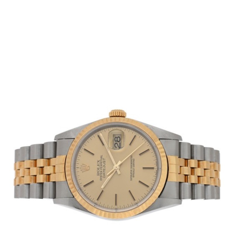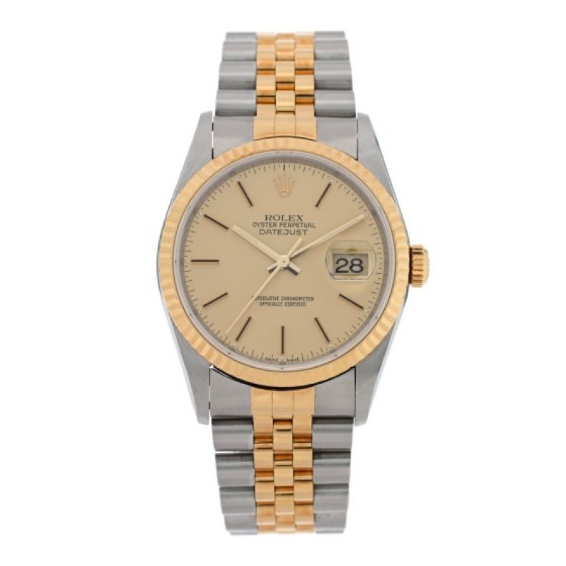 Rolex Stainless Steel 18K Yellow Gold 36mm Oyster Perpetual Datejust Watch Champagne 16233