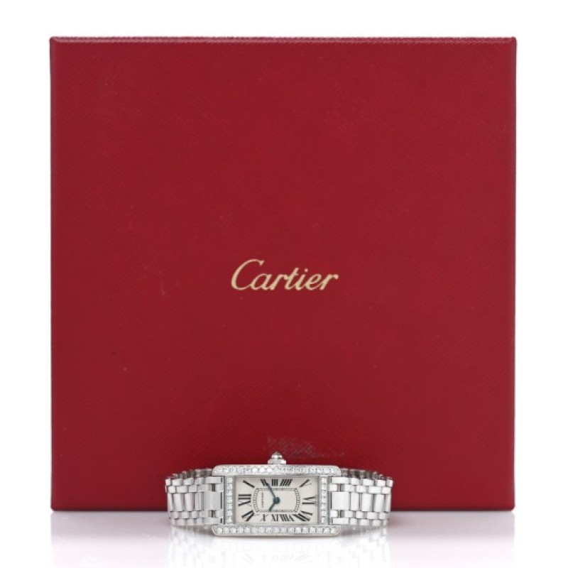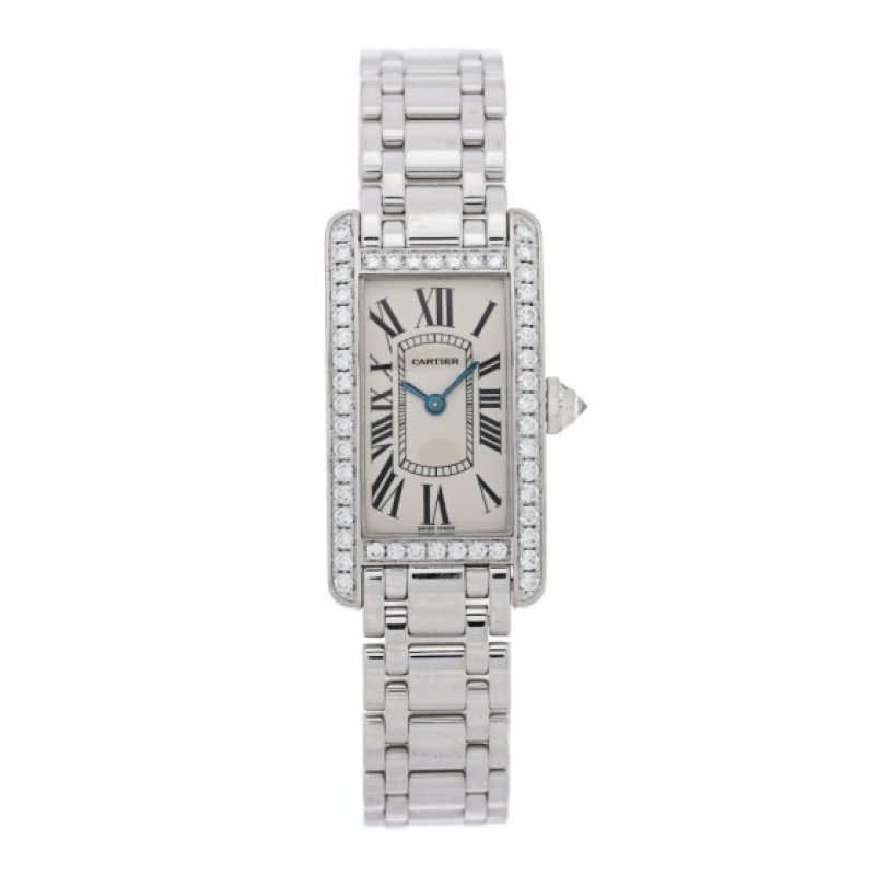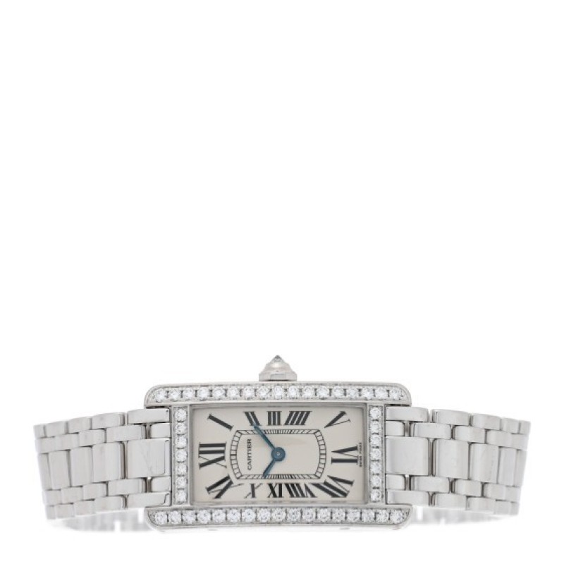 Cartier 18K White Gold Diamond Bezel 19mm Tank Americaine Quartz Watch