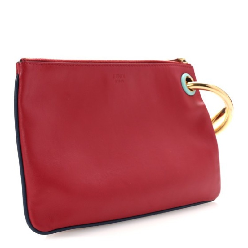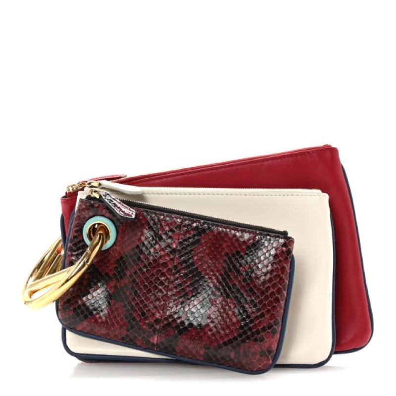 Fendi Calfskin Snakeskin F is Fendi Triplette Pouch Set Red Multicolor