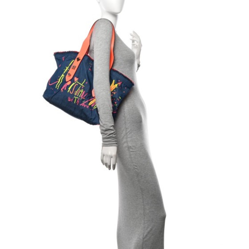Christian Louboutin Denim Frangibus Printed Tote Blue Multicolor