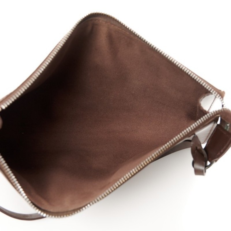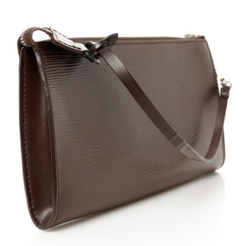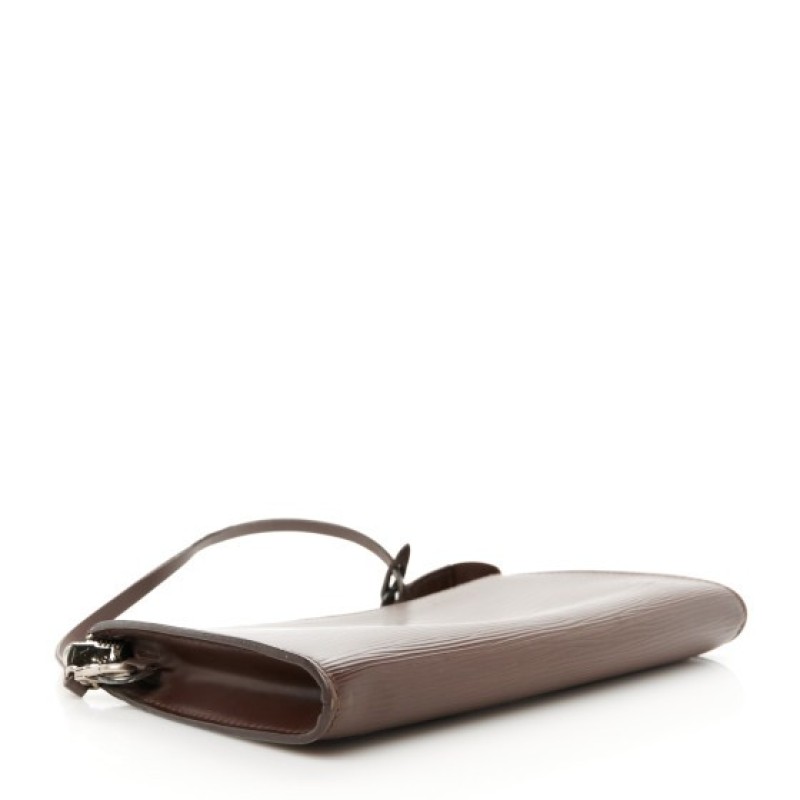 This is an authentic LOUIS VUITTON Epi Pochette Accessories 24 in Moka. This stylish pochette is finely crafted of Louis Vuitton signature textured epi leather in brown. The bag features a leather wrist strap and matte silver hardware including a D-ring clasp. The top zipper opens to a brown microfiber interior.