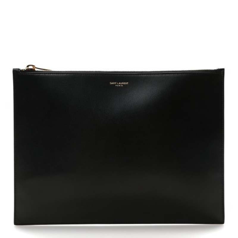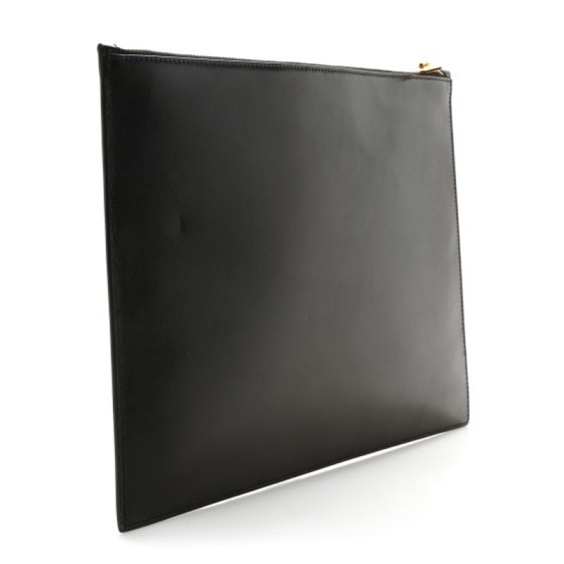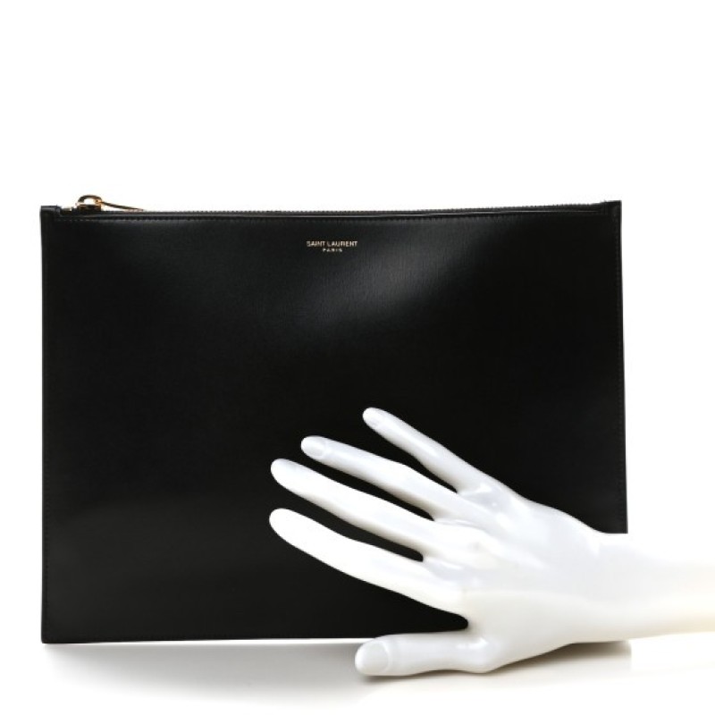 Saint Laurent Calfskin Medium Zip Clutch Black