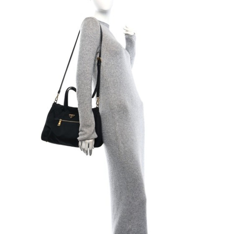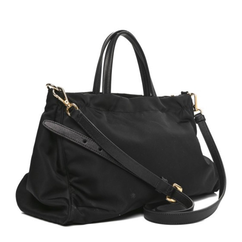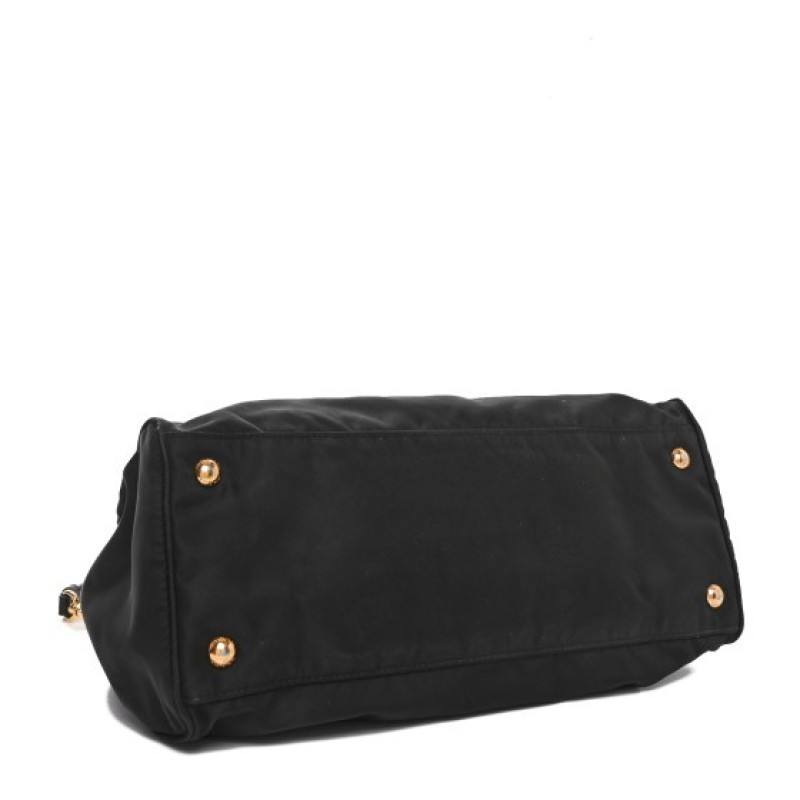This is an authentic PRADA Tessuto Nylon Saffiano Shopping Tote in Black. This stylish shoulder bag is crafted of tessuto nylon in black. The bag features black saffiano shoulder handles, a facing gold Prada logo. The top opens to a pink Prada fabric interior with a zipper pocket.