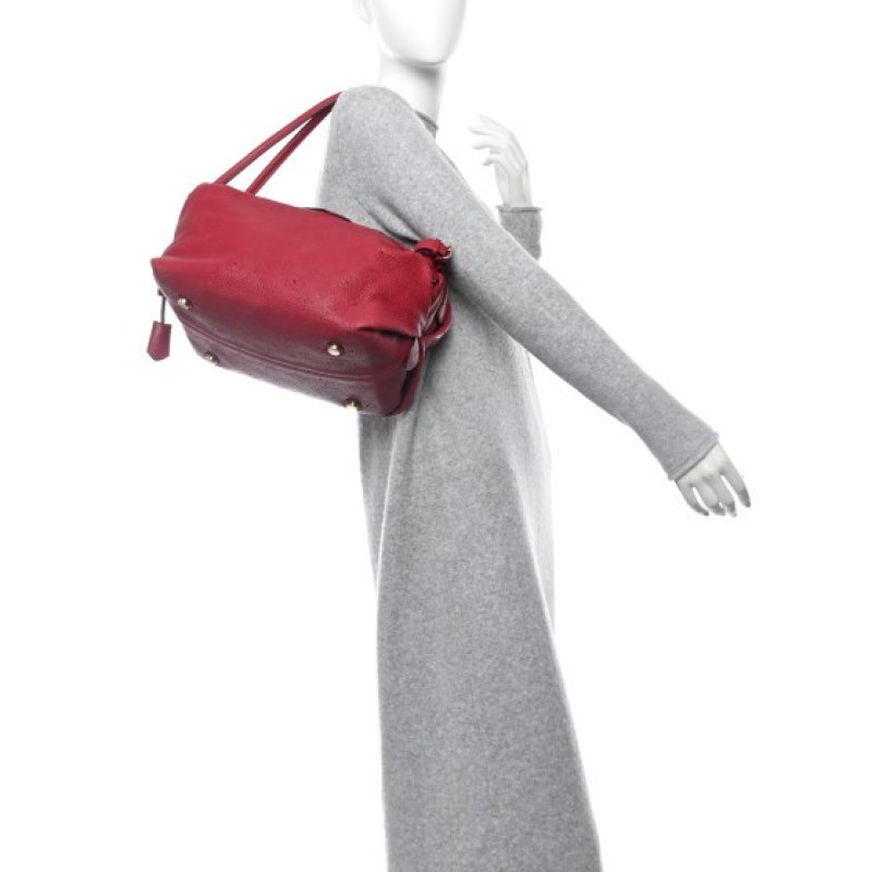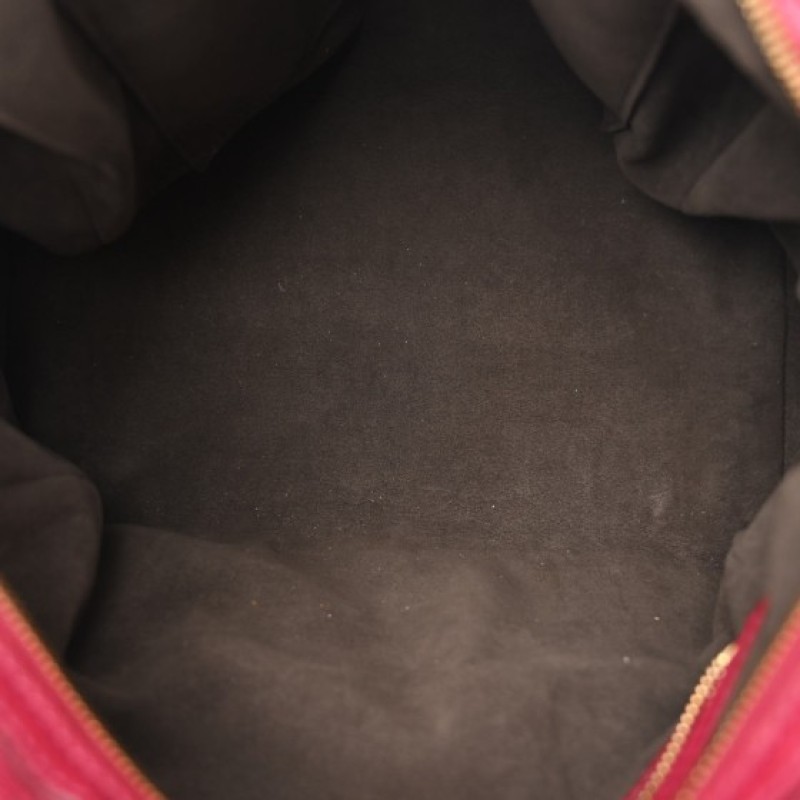 This is an authentic LOUIS VUITTON Mahina Galatea PM in Grenat. This chic satchel is crafted of Louis Vuitton monogram perforated Mahina leather. The bag features tall leather strap top handles and a brass padlock with a hanging clochette with the key. The top zipper opens to a chocolate brown microfiber interior.