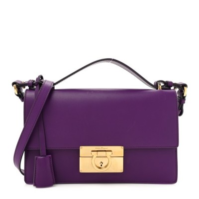 Salvatore Ferragamo Smooth Calfskin Medium Aileen Gancio Lock Shoulder Bag Grape Rosso