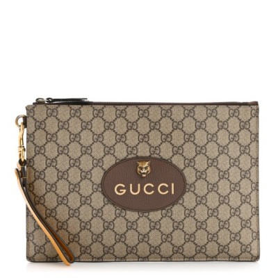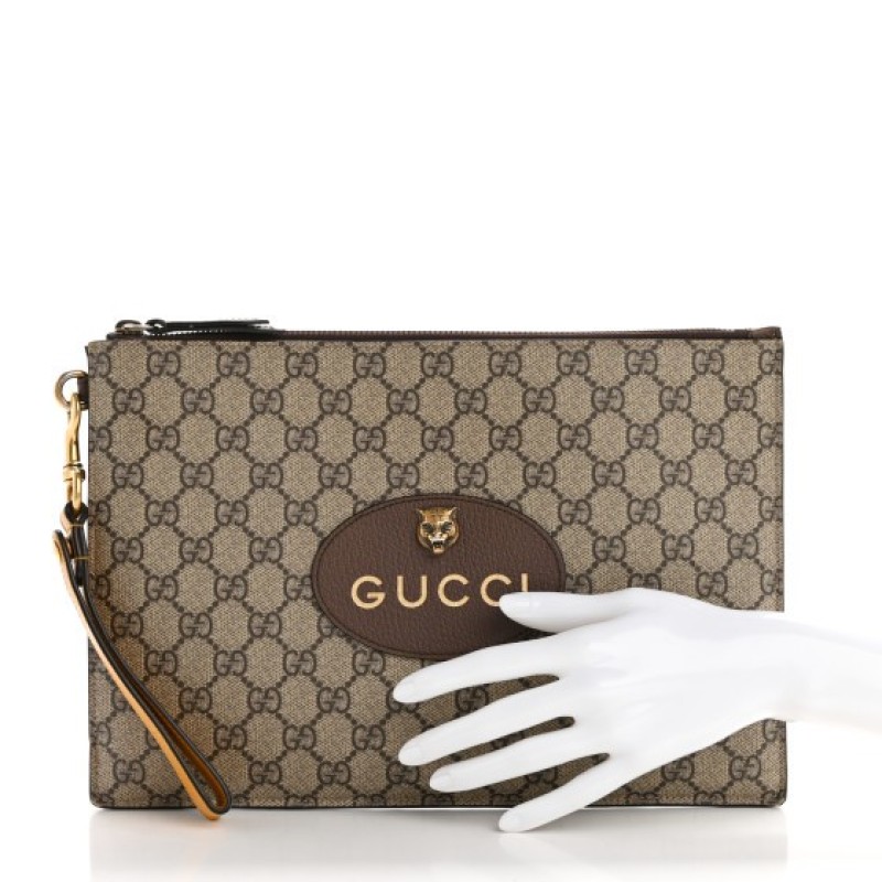 Gucci GG Supreme Monogram Neo Vintage Zip Wristlet Pouch Beige New Acero Crop