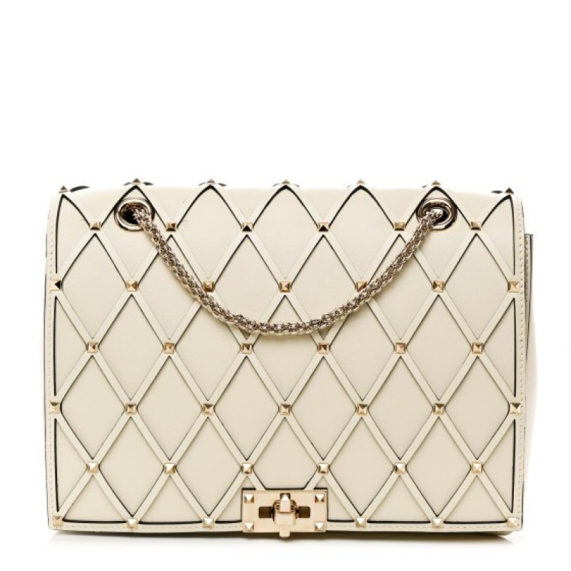 Valentino Garavani Smooth Calfskin Quilted Beehive Shoulder Bag Light Ivory $1,200 |
