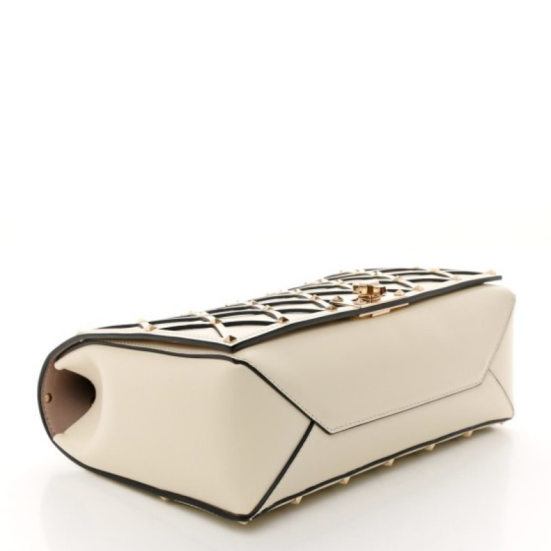 Valentino Garavani Smooth Calfskin Quilted Beehive Shoulder Bag Light Ivory