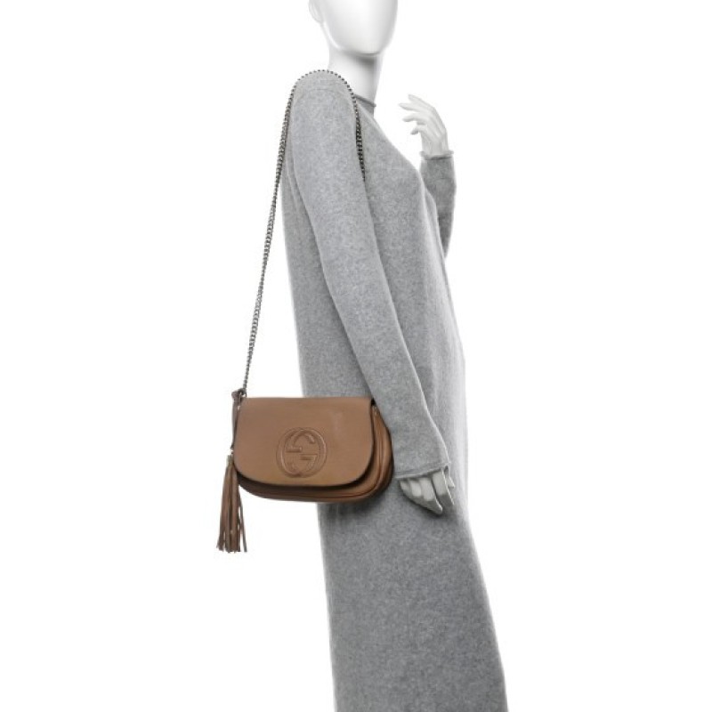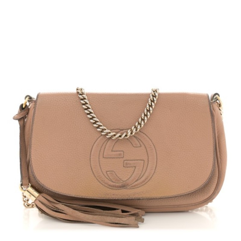 Gucci Pebbled Calfskin Medium Soho Flap Crossbody Camelia