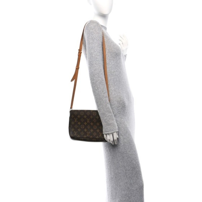This is an authentic LOUIS VUITTON Monogram Musette Tango Long Strap. This chic shoulder bag is finely crafted of Louis Vuitton monogram on coated canvas. The bag features a long vachetta cowhide leather shoulder strap with polished brass hardware and a frontal flap. This flap opens to a saffron alcantara microfiber interior with a pocket.