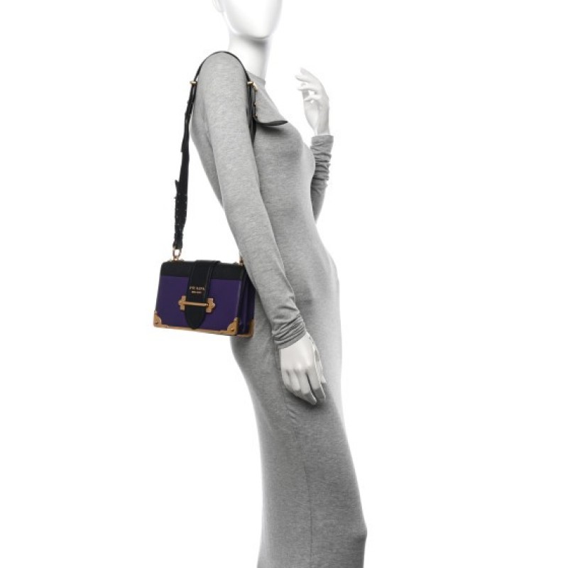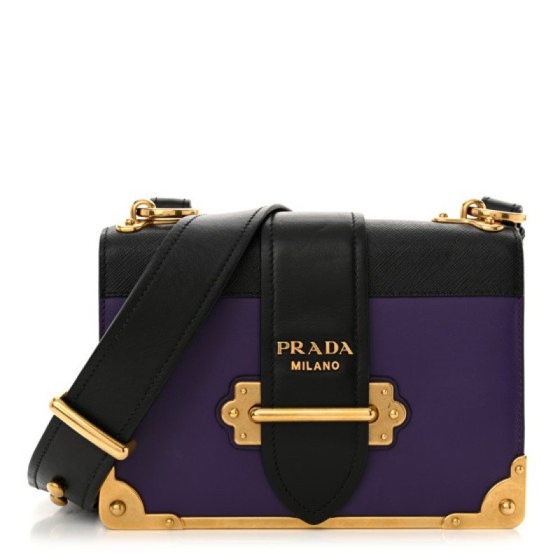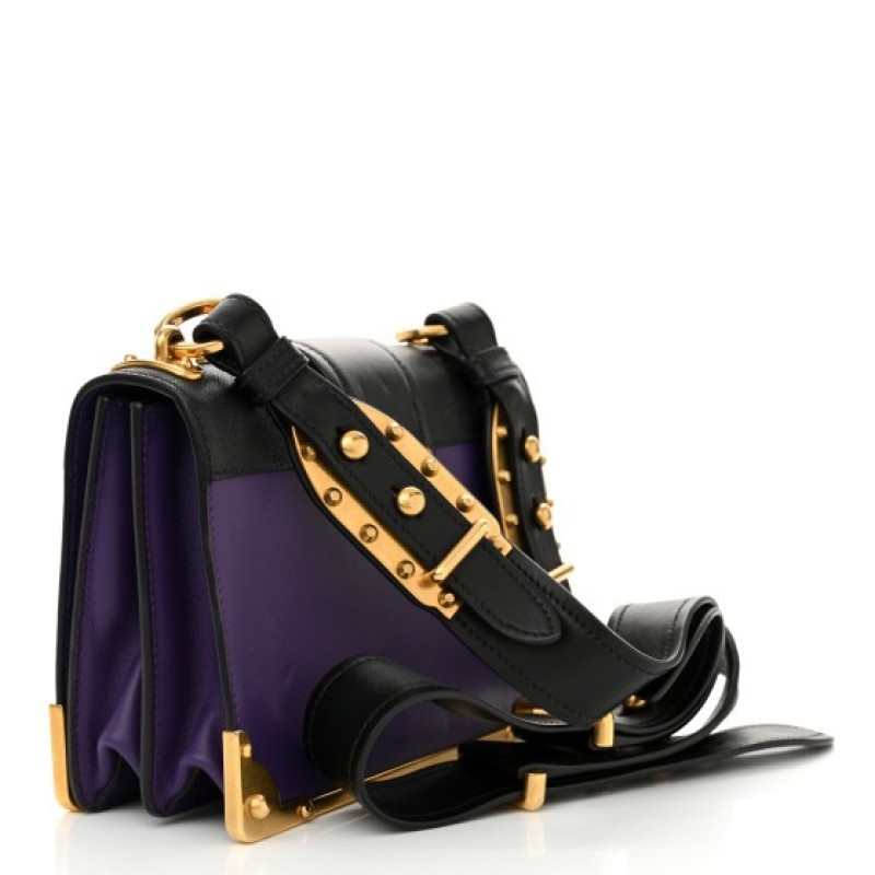 Prada City Calfskin Saffiano Cahier Bag Purple Black