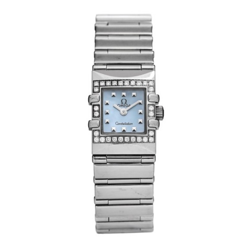 Omega Stainless Steel Diamond Bezel Blue Mother of Pearl 15mm Constellation Quadra Quartz Watch 1537.74.00 $915 |