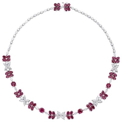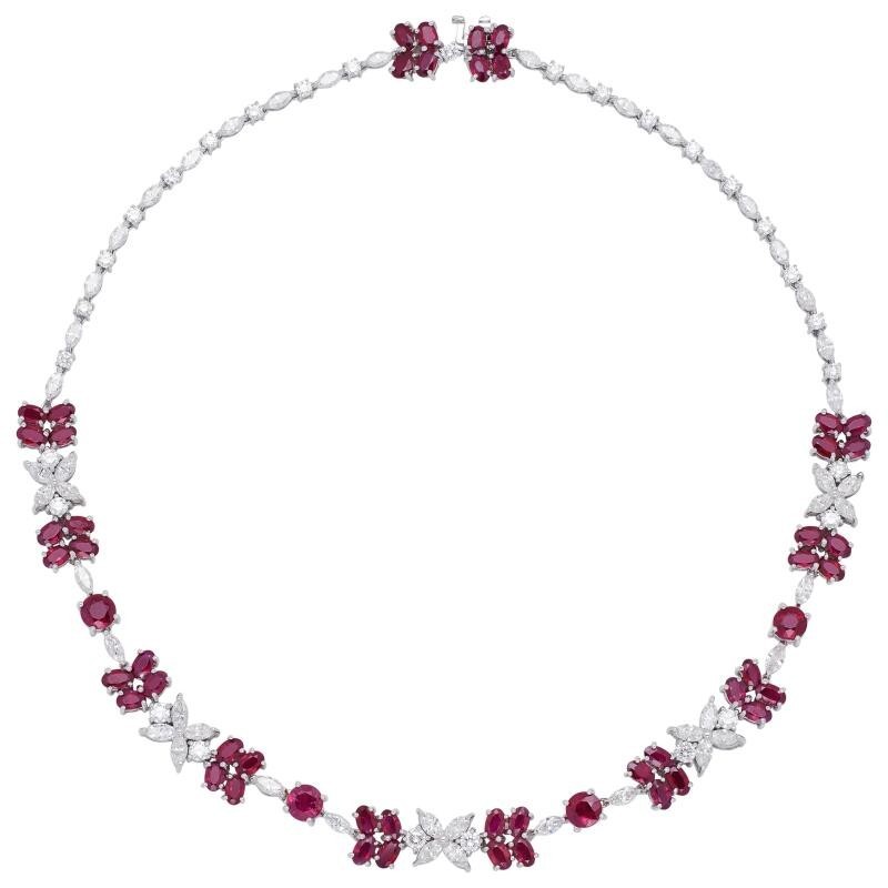 White Gold, 19.20ctw Pigeon Blood Burma Ruby and Diamond Necklace