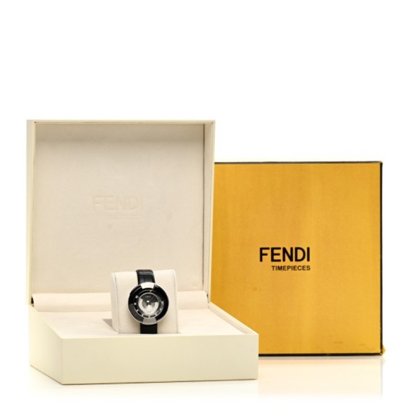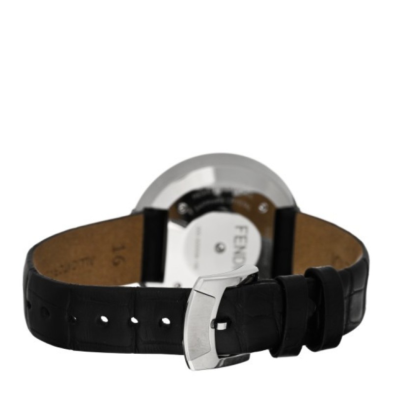 This is an authentic FENDI Stainless Steel Alligator Diamond 38mm Policromia Quartz Watch. This watch is crafted from stainless steel and features a silver obsidian dial, black alligator strap, sapphire crystal, and a quartz movement.