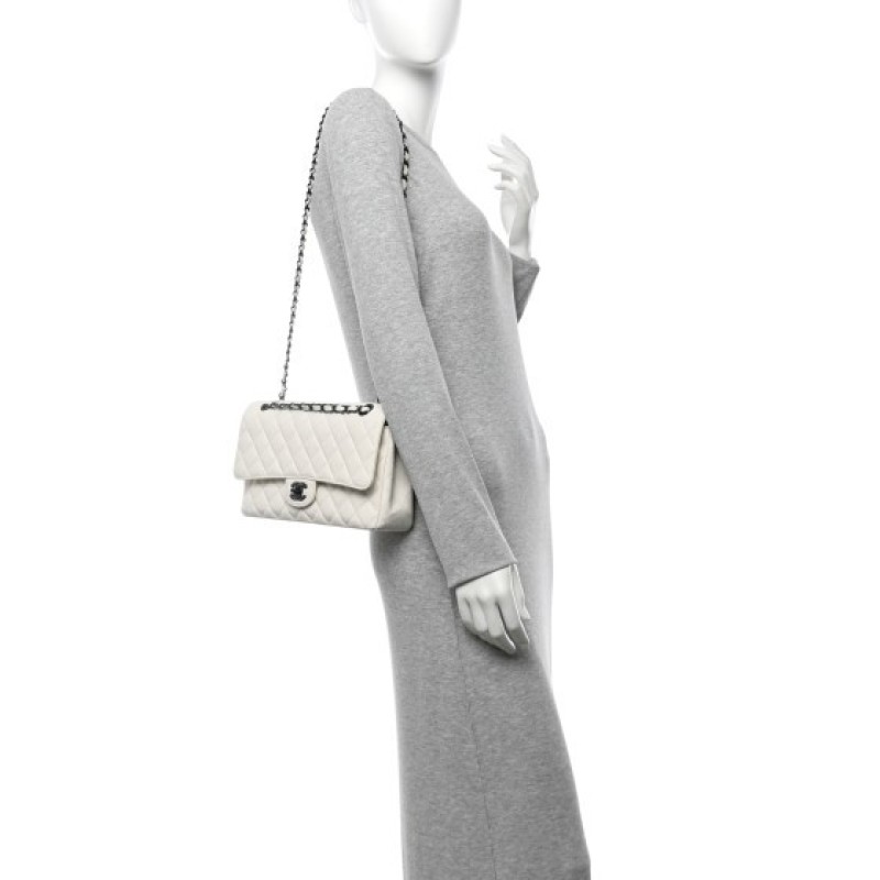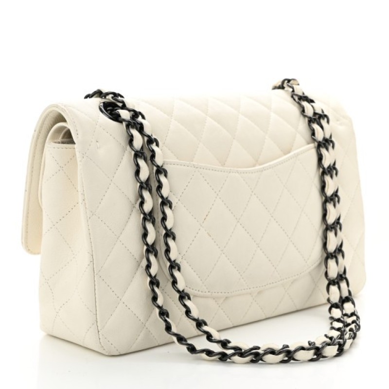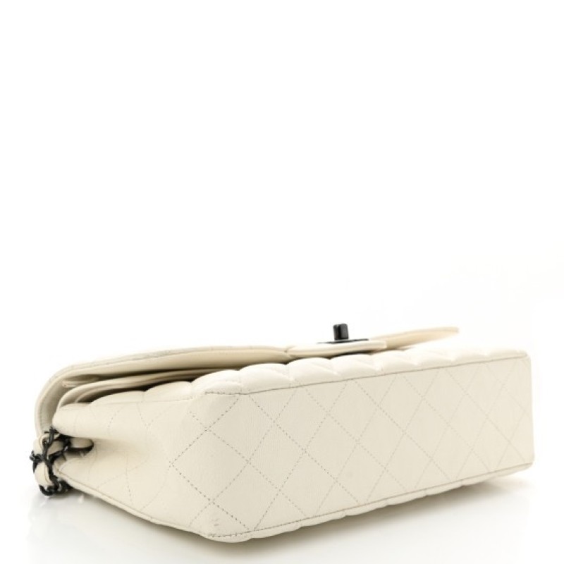 Chanel Crumpled Calfskin Quilted Medium Double Flap White
