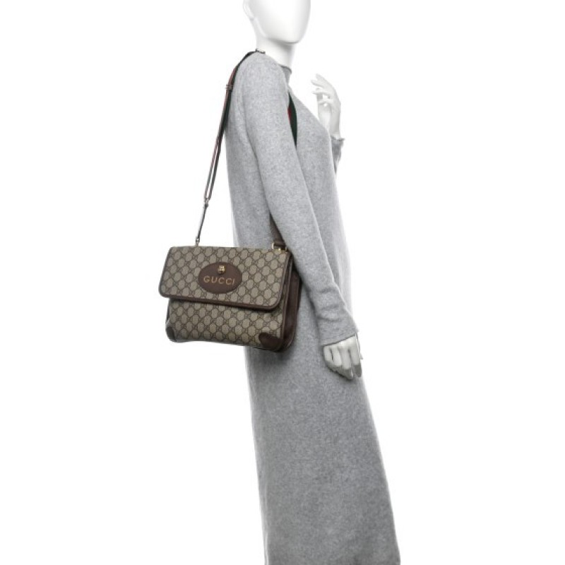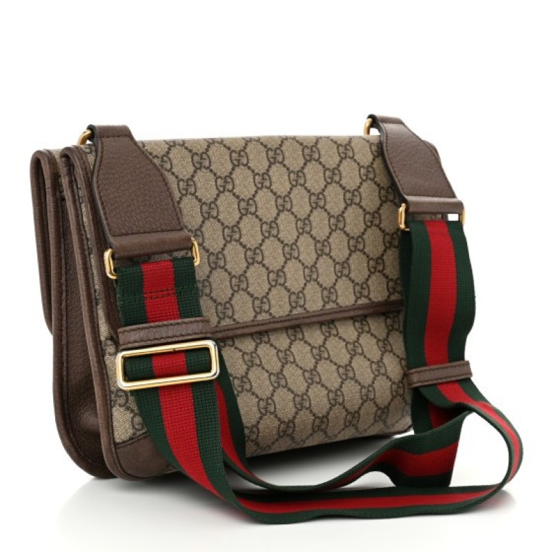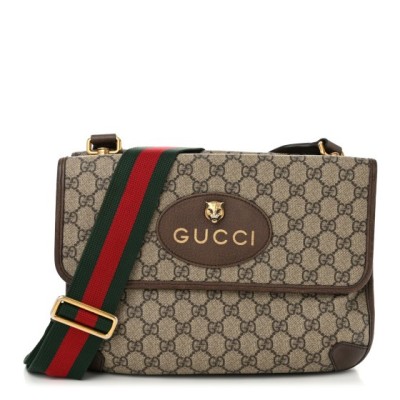 Gucci GG Supreme Monogram Web Neo Vintage Double Flap Messenger Bag Beige New Acero